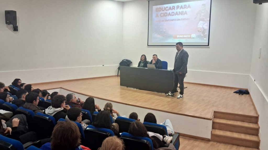 O objetivo era as escolas “trazerem alguém para falar e interagir com os alunos sobre poupança e literacia financeira, e como gerir o dia-a-dia ou uma carreira”. Um dos requisitos para o orador era ter uma ligação à escola ou ao concelho. “Naturalmente que nos lembrámos do Bruno Basto, que tem raízes aqui em Vila Pouca de Aguiar. Foi atleta profissional e atualmente está na área empresarial, é agente desportivo. Lançámos o convite ao Bruno, que o acolheu, e esta ação é precisamente para que interaja com os nossos alunos, num formato diferente, de pergunta/resposta, numa interação direta, que é isso que eles precisam e gostam”.