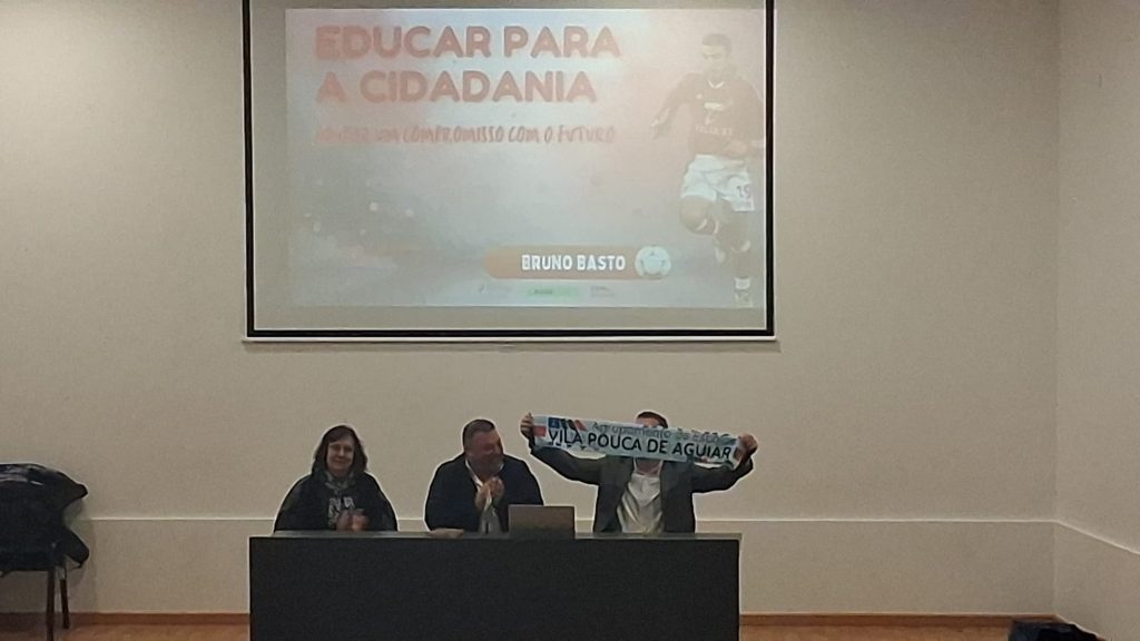 Bruno Basto é ex-jogador de futebol profissional e, neste momento, é empresário de jogadores, como agente da Federação Internacional de Futebol (FIFA). Com raízes no concelho de Vila Pouca de Aguiar, recebeu o desafio do Agrupamento de Escolas com “um orgulho imenso, e também com um sentimento de reconhecimento, porque eu passei a minha infância aqui, apesar de não ter nascido cá, a minha mãe e a minha avó são daqui, ou seja, a minha família materna é daqui. Passei quase toda a minha infância cá e não trocava as minhas férias aqui por nada, portanto, para mim foi um motivo de orgulho, o convite do Diretor Paulo Pimenta, de poder estar perante tantos alunos de um concelho que me diz muito”.