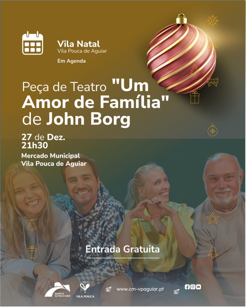 No dia 27 às 21h30, no Mercado Municipal, as festividades continuam em grande com a estreia de uma peça de grande relevo nacional – “Um Amor de Família” de John Borg (direção de Celso Cleto, com os atores Sofia Alves, Diogo Lopes, Diana Marquês Guerra e João de Carvalho).