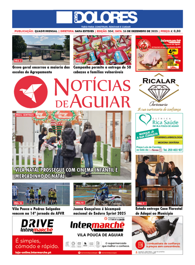 Capas Edição nº 554 Por: Redação Data: 16 de Dezembro, 2025 Artigo anteriorSara Mota sucede a Ivo Oliveira na presidência da ULS de Trás-os-Montes e Alto DouroPróximo artigoHabitação assaltada em Quintã de Jales em plena luz do dia Redação Partilhar FacebookWhatsAppEmail Últimas Habitação assaltada em Quintã de Jales em plena luz do dia Sara Mota sucede a Ivo Oliveira na presidência da ULS de Trás-os-Montes e Alto Douro Vila Natal prossegue com cinema infantil e mercadinho de Natal Sarau de Natal da Academia Dança D’Aguiar encheu o Mercado Municipal de magia Sport Clube Vila Pouca faz balanço da atividade e projeta futuro em Gala de Natal Artigos relacionadosRelacionado Habitação assaltada em Quintã de Jales em plena luz do dia Redação - 17 de Dezembro, 2025 Ocorreu um assalto a uma habitação, em plena luz... Sara Mota sucede a Ivo Oliveira na presidência da ULS de Trás-os-Montes e Alto Douro Redação - 16 de Dezembro, 2025 O Governo nomeou Sara Alexandra Clemente Caetano da Costa... Vila Natal prossegue com cinema infantil e mercadinho de Natal Ângela Vermelho - 16 de Dezembro, 2025 Já no próximo fim de semana, mais “pegado” ao... Sarau de Natal da Academia Dança D’Aguiar encheu o Mercado Municipal de magia Ângela Vermelho - 15 de Dezembro, 2025 O Mercado Municipal de Vila Pouca de Aguiar foi...